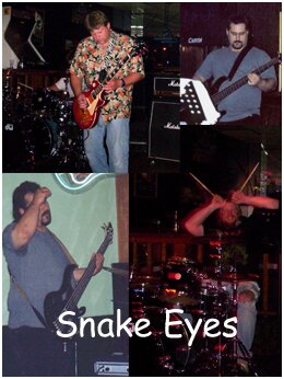 Snake Eyes is a veteran bar band from Cleveland, Ohio and has been playing throughout Cleveland and Northern Ohio for over ten years...The current lineup is Bob Toth-lead guitar, vocals...Boosch-bass guitar, vocals..and Gary Hostnik-drums, vocals...Snake Eyes plays rocking covers of music by Led Zeppelin, ZZ Top, Aerosmith, Cream, Black Sabbath and many other classic rock songs...All three band members grew up in Maple Heights and have played together in one form or another for nearly twenty five years...For more information E-mail the band at |